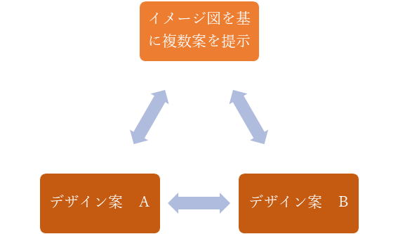イメージ図を参考に案を複数提示いたします。どちらか選んで頂き細部について2回目まで修正に応じます。3回目からは有料となります。ご了解ください