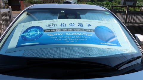 有効空間に取り付けた、特許使用の製品です。 アド・エコシェイド、アートエコシェイド 車内フロントガラス内面は規制の無い空間です